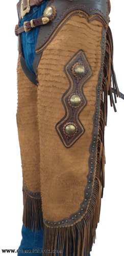 Chinks aus hellbraunem, handgekratztem Leder mit Conchos